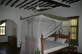 16 rooms of the hotel are all strictly kept in the Swahili design and architecture. Therefore all rooms have the high Zanzibar beds with mosquito nets and a high ceiling decorated by logs. | ||||||||||||||||||||||||||