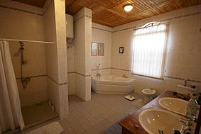 In the huge bathroom of the master bedroom you will find all you need for you fully convenience - even a faraway view through the bathroom window while taking a bath! |