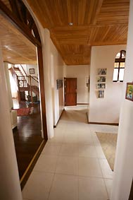 Back in the U-shaped house: If the living room is the bottom of the "U", this photograph displays the upper part of the bottom while the left wing of the "U" continues at the end of this short corridor to the right hand side. |