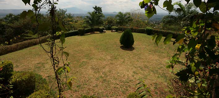 Not less impressive is the view towards the West. Down in between the trees runs the road towards the city centre. |