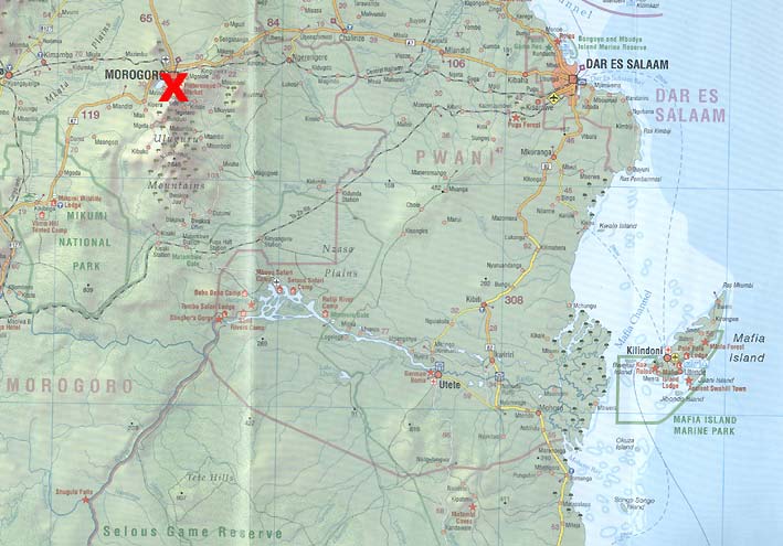 Located just 190 kilometers or 2,5 hours by car Westwards from Dar es Salaam the area becomes more and more interesting for all kind of visitors from the coast. Situated on the foot of the Uluguru Mountains and between Selous, Africas biggest game reserve, and Mikumi National Park, the country's third biggest Park, the area has a lot to offer for the its tourist. In terms of day tours as well as round tours via Mikumi and across Uluguru Mountains into the great plains of Selous till the Indian Ocean; Morogoro is a significant station for all operations. The landuse is still residential, but it can be transformed easily into commercial boutique lodge, because what is already there is predestinated for foreign visitors who know how to appreciate a breath taking spot like this. Further the plot offers still lots of vacant niches for extension. |