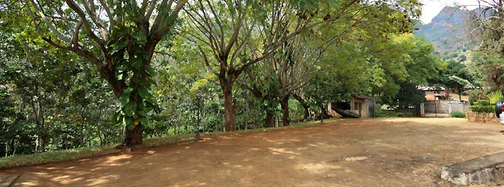 From the main gate towards the building is sufficient flat area for parking or even for more construction available. Just left of the gate is the small servant house situated. |