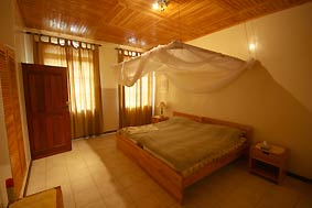 Dining, living and tower room are equipped with durable tropical hardwood on the floor, while the rest of the building is throughout tiled. Take a glance though one of the windows of the only first floor room of the villa! |