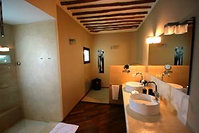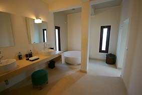 Double sink, bidet and a very spacious shower area ensures a luxurious stay with high privacy in an elegant atmosphere. |