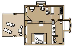 All elegantly furnished-40 suites have the same amenities like bar fridge, safe, TV, private patio and they are designed to accommodate up to 3 guests. |