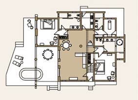 bedroom. The back of the suite is reserved for the wooden closet and the