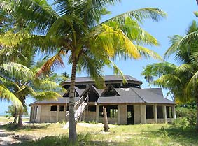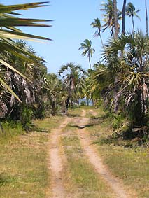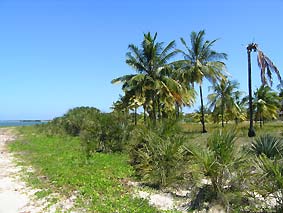 ![]() Viewed from the South end of the property through the healthy palms. On the left hand side of the picture the sandy beach stretch of the Southern part of the bay gets visible. North and South of "Lodge lagoon" are a few weekend and holiday houses of expatritates situated.
