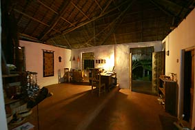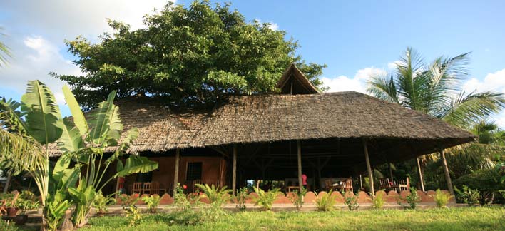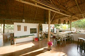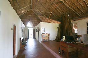 Under the palm thatched 'makuti' roof it never gets damp or hot. The office and reception are the center point of this construction. |